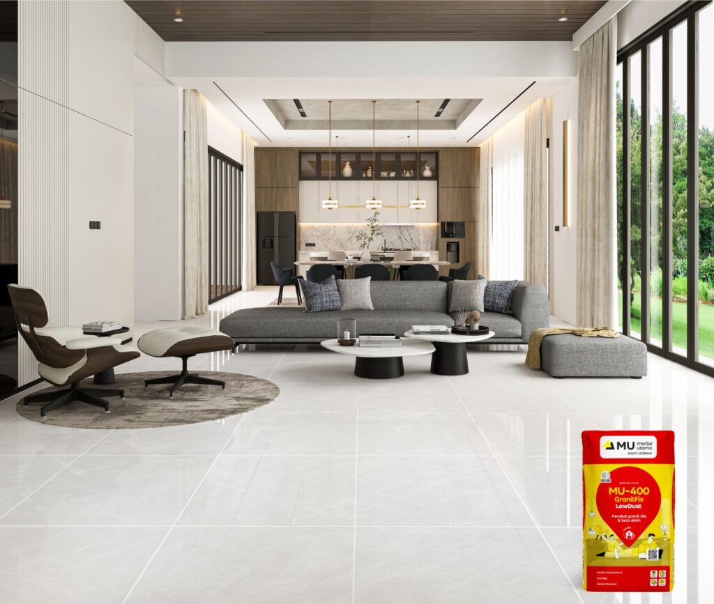 Untuk itu jenis perekat seperti MU-475 GranitFix PLUS bisa menjadi pilihan tepat untuk granit dengan ukuran besar. Jenis mortar ini sudah dilengkapi aditif polimer tinggi dengan daya rekat kuat yang bisa mengurangi resiko ubin terangkat.